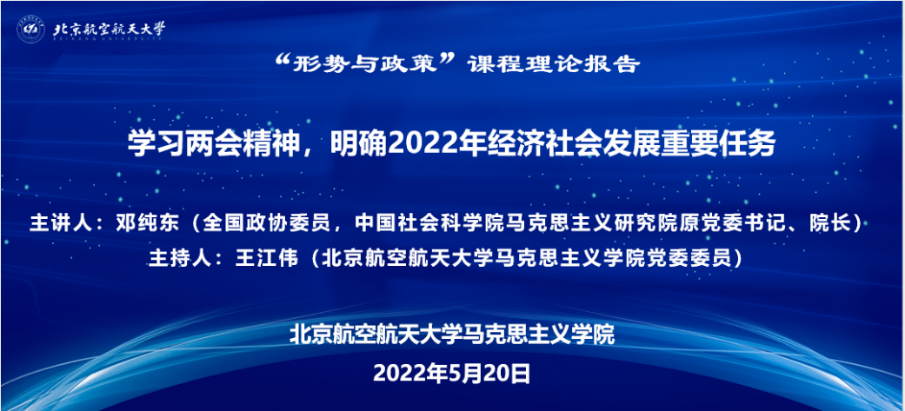 2022年5月20日上午,我校“形势与政策”课程邀请全国政协委员、中国社会科学院马克思主义研究院原党委书记、院长邓纯东研究员走进我校思政课课堂,作《学习两会精神,明确2022年经济社会发展重要任务》的专题报告。报告采取“腾讯会议+直播”的形式进行,我校2021级本科生在线聆听,MG冰球突破官网网站部分教师旁听了讲座。报告由我校MG冰球突破官网网站党委委员、“形势与政策”课程负责人王江伟主持。