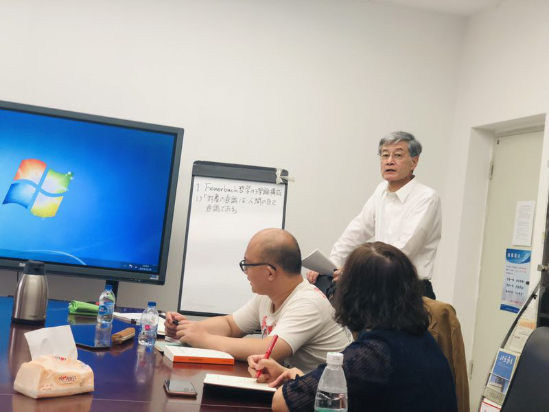 渡边宪正教授首先介绍了《德意志意识形态》online版的排版、标注以及创新。然后围绕马克思《德法年鉴》时期的著作,对费尔巴哈与马克思早期学术关系进行了学术报告。以法国阿尔都塞为代表的一批学者认为马克思在《1844年经济学哲学手稿》中还处于费尔巴哈的人本主义影响之中,马克思在1844—1845年间期间存在“认识论”的断裂。渡边教授则通过详解费尔巴哈对基督教的批判,将神的本质归结为人的本质的“类本质”哲学,主张马克思在1843年就已经开始批判费尔巴哈的启蒙主义式理论结构,《1844年经济学哲学手稿》和《关于费尔巴哈的提纲》之间不存在所谓的“断裂”或“超越”。最后,渡边宪正教授详细的介绍了对于神的本质、人的本质、市民社会、政治国家等哲学概念,费尔巴哈、黑格尔和马克思在理解上的异同。在此期间,渡边教授用板书的形式向MG冰球官网学生清晰地展示了此次学术活动的思想脉络,鼓励学生共同思考积极发问,并对MG冰球官网师生所提的问题一一回答。
