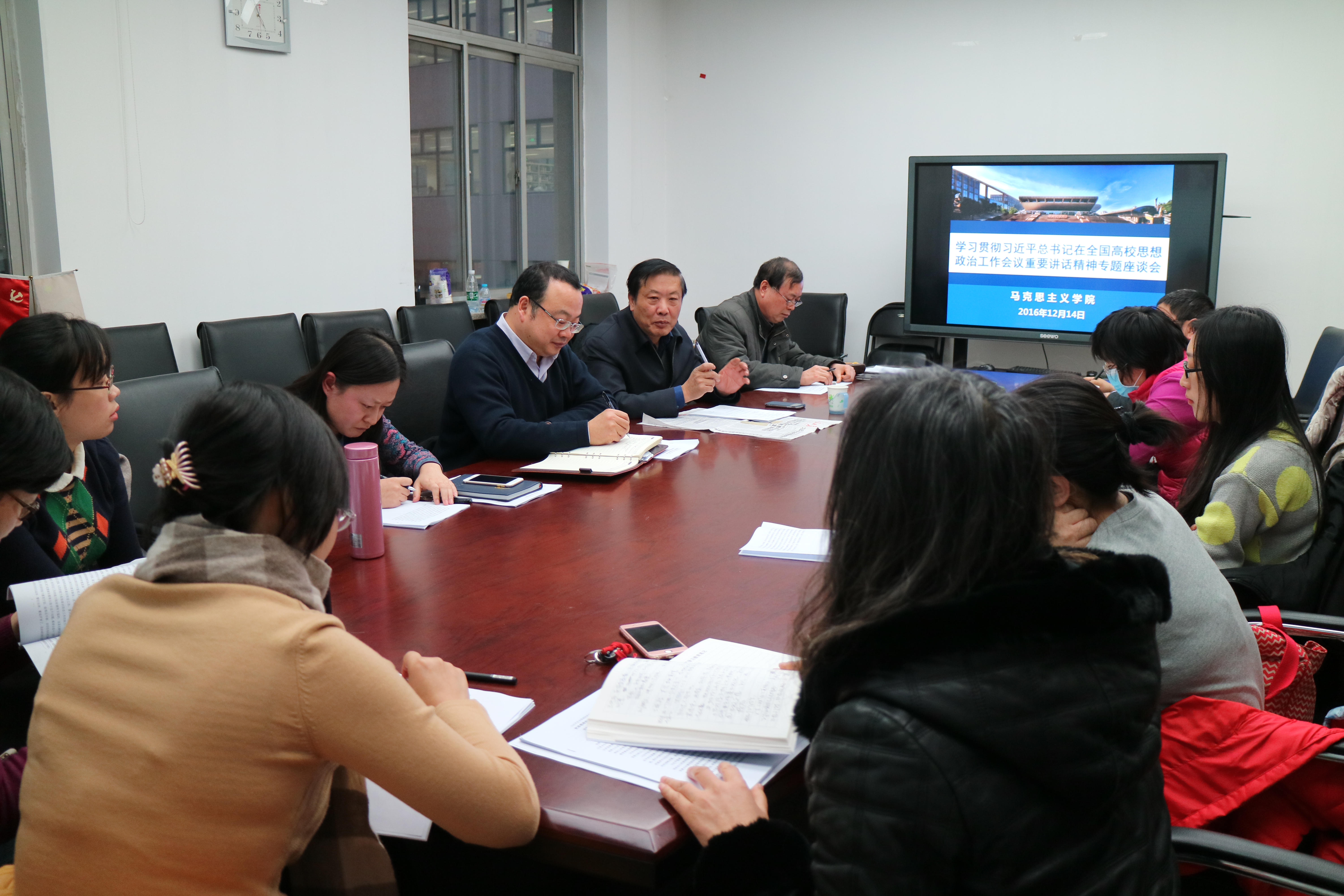 12月14日下午,MG冰球突破官网网站召开专题学习会,深入学习习近平总书记在全国高校思想政治工作会议重要讲话精神。