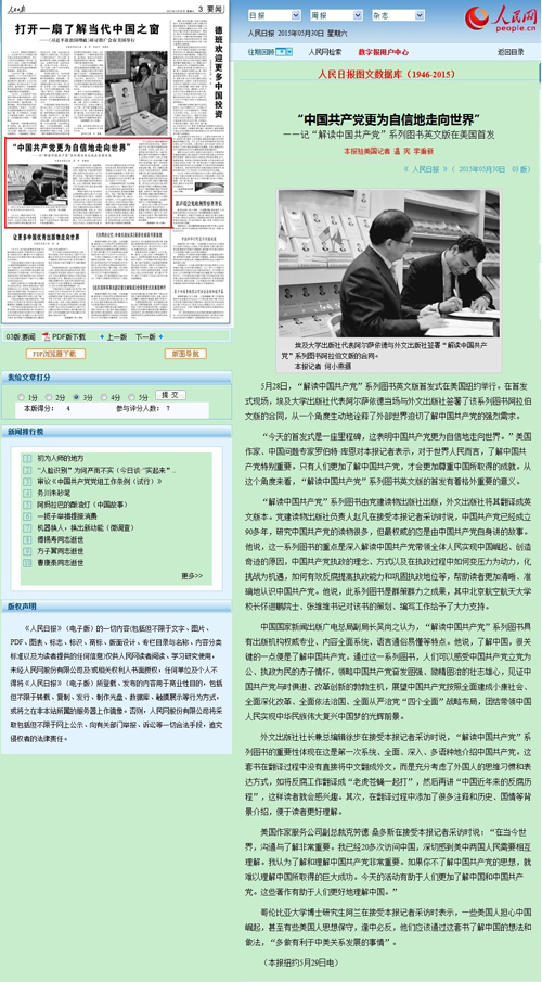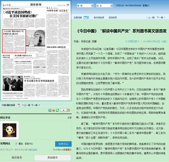 《今日中国》“解读中国共产党”系列图书共5本,分别为《中国奇迹的奥秘》《依靠谁为了谁:中国共产党的执政理念》《中国共产党是怎样执政的》《挑战与应对:迎难而上的中国共产党》《中国新时期反腐败历程》。该套由MG冰球官网、人文学院的有关专家学者撰写的丛书,在美引起了强烈反响。