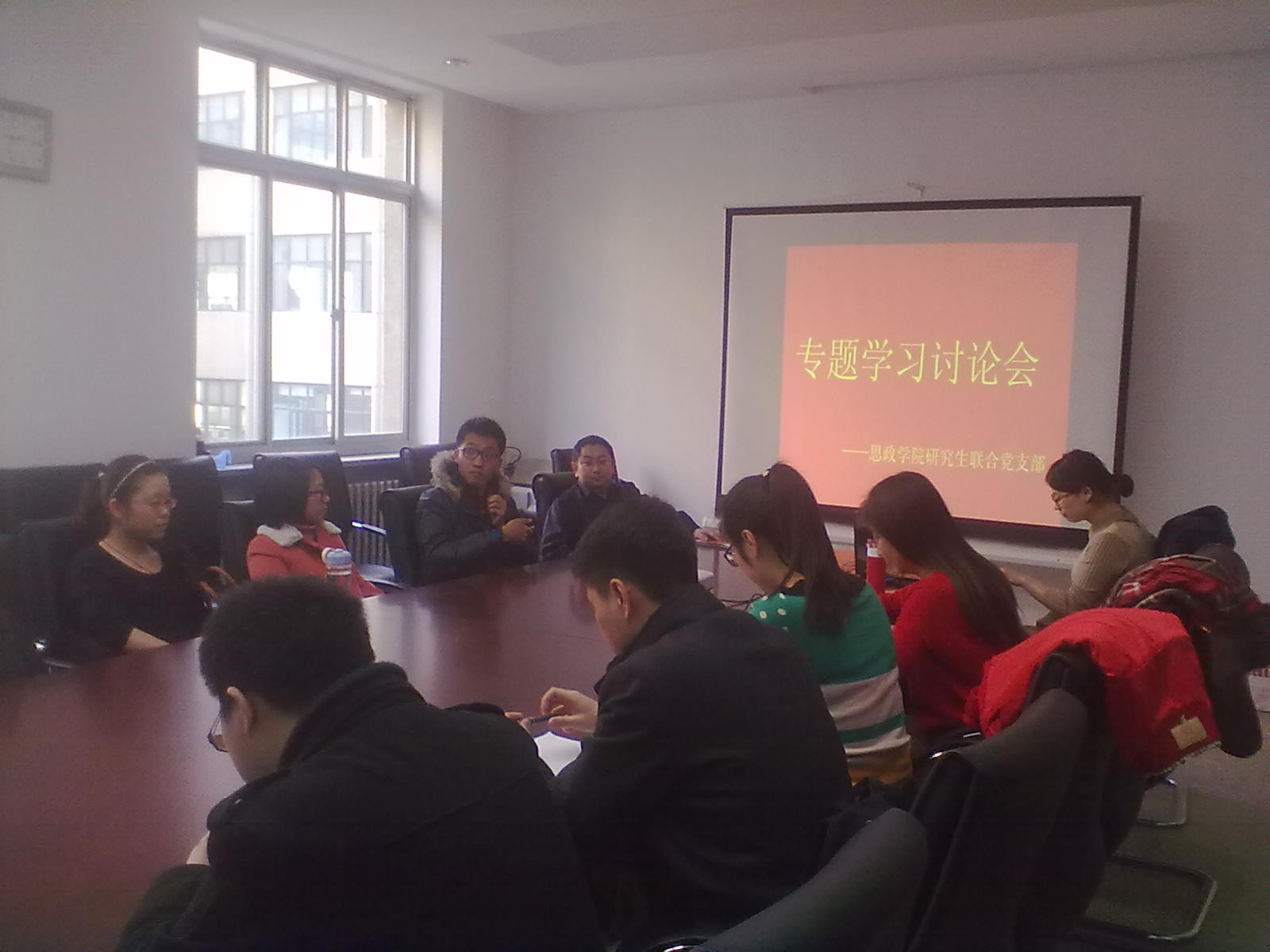 首先,高宁老师对上午张军副校长和金灿荣教授的报告内容进行了总结,并对本学期党支部工作提出了建设性意见。高宁老师就新学期MG冰球官网党支部应积极开展各项工作,并对应该做什么,如何去做进行了具体的举例说明。如即将召开“两会”和十七届四中全会,作为思想政治理论学院的党员应当对时事进行追踪学习并通过大众传媒对新理论、新思想进行有效地宣传,使更多的学生关注和学习我党提出的新思想、新理论。在谈到如何加强宣传力度时,高宁老师指出,我支部应加强对网络资源的利用,运用网络这一覆盖面广的媒介进行理论宣传,并强调在宣传时应多采用新颖的写作手法来激发读者们的阅读兴趣,从而使读者们在愉快的阅读体验中加深对我党相关理论与政策的认知和了解。
