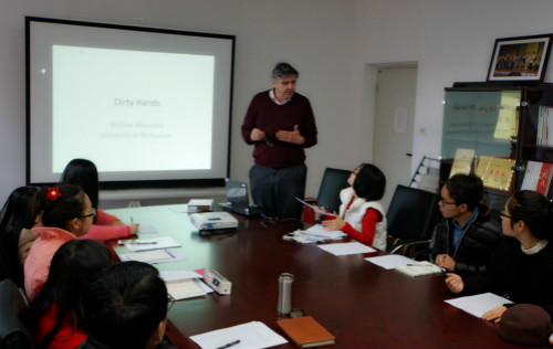 11月21日上午,Alexandra教授以《政治“脏手”与政治家的职业伦理》为题,为MG冰球官网师生作了一场别开生面的报告。该报告主要围绕政治“脏手”这一当代政治哲学的前沿问题展开讨论。在报告中,他分析了“脏手”的内在结构,梳理了后果论、义务论对政治“脏手”之正当合理性的评价,剖析了道德多元主义和角色伦理等对政治“脏手”的辩护。在此基础上,他着重从角色伦理的角度阐释了职业的特性、以及政治家应具备的基本素养和资质条件,并从政治制度的层面探讨了如何尽可能避免误用或滥用政治“脏手”。会后,学院师生针对报告内容进行了热烈讨论。