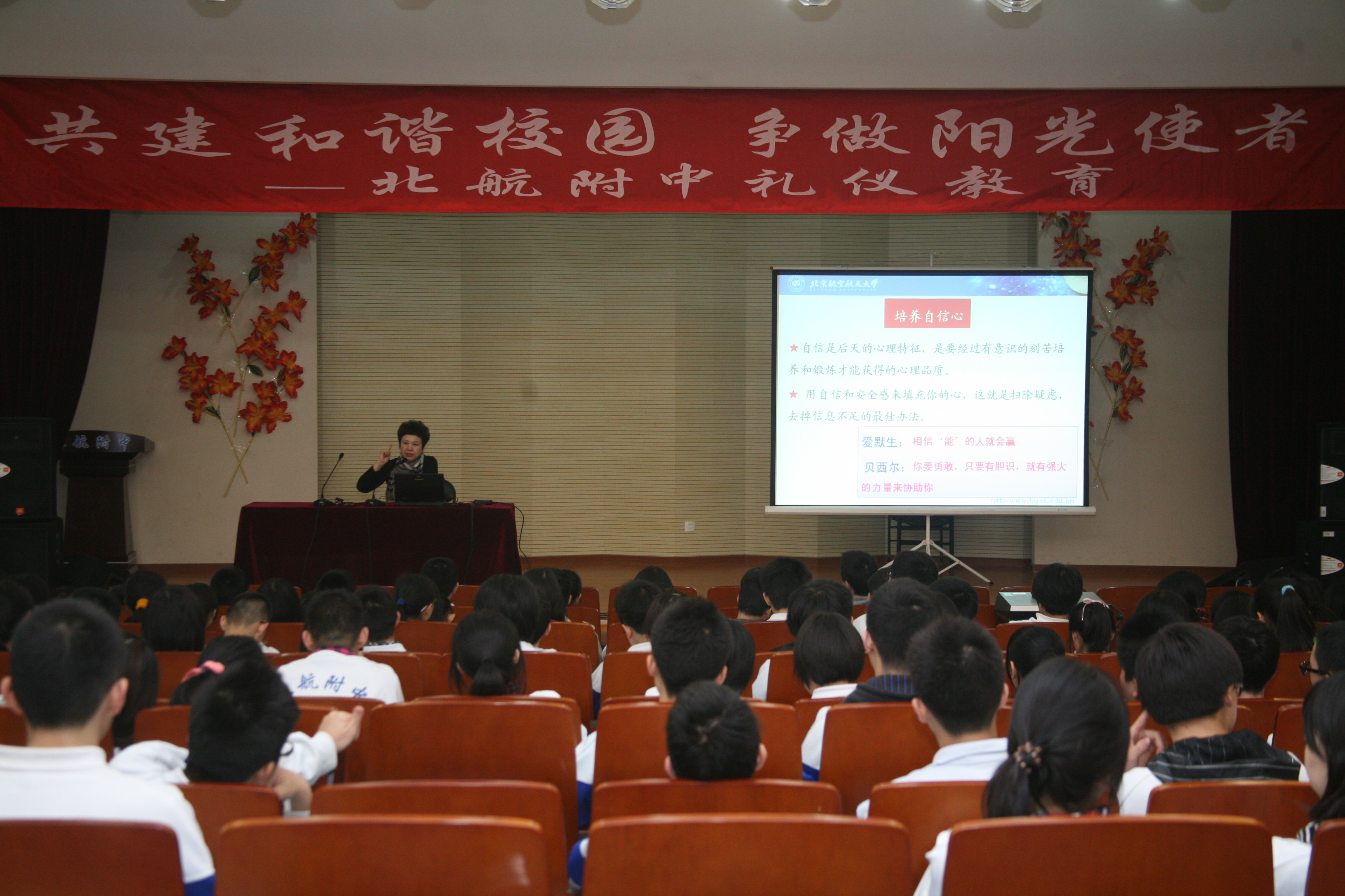 3月14日,在北航附中文明礼仪教育活动月之际,MG冰球官网姚小玲教授应邀来到附中,为同学们带来了一堂题为“演讲与口才”的礼仪教育课程。