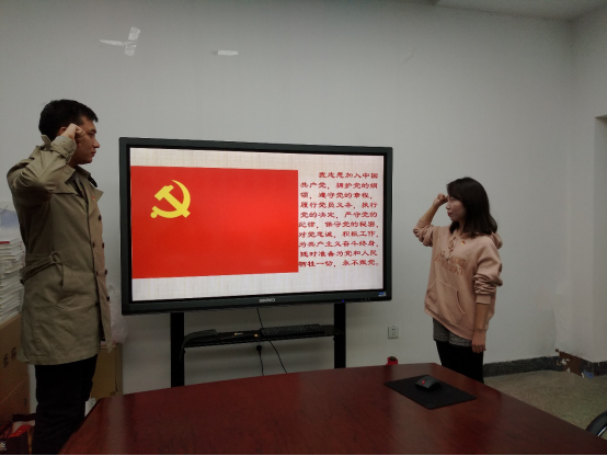 首选,杨乔松同志结合党的十九大精神,对党的十八大以来党中央关于发展党员的流程做了相关介绍,对与会党员提出了认真学习党的十九大精神、对照党章进行自我检查的要求。随后,重点发展对象张敏向组织汇报了自己对党的认识、入党动机等情况。她在发言中表示,要时刻不忘初心,牢记使命,以一名共产党员的标准严格要求自己,不断增强“四个意识”,自觉同以习近平同志为核心的党中央保持高度一致,努力学习,踏实做事,为党和国家的发展贡献自己的力量。接着,张敏的入党介绍人郑钊同志和杨波同志分别对张敏的情况做了说明。在听完入党介绍人的介绍后,按照要求,支部所有正式党员通过无记名投票方式进行表决,一致通过了张敏的入党申请,并同意接收其为预备党员。然后,张敏同志在杨乔松同志的带领下,进行了庄严的入党宣誓。最后党支部书记杨乔松同志做了总结发言,他希望各位党员同志能自觉践行自己的入党誓言,在以后的学习生活中,充分发挥共产党员的先锋模范作用,积极参与党组织建设,与党组织保持密切联系。