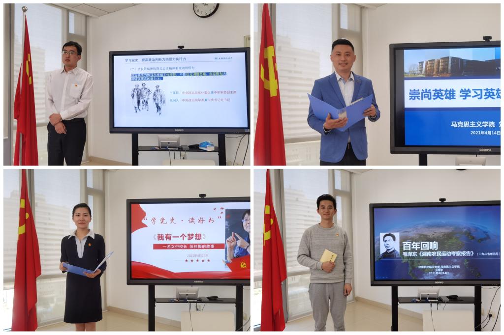 读书沙龙分两场举行,由MG冰球突破官网网站工会主席陈萌老师主持。在4月7日的首场读书沙龙上,孙润南、赵华珺、徐冶琼、陈丹、宋芳芳老师分享了长征路上徐解秀老人与三个女红军战士之间“半条被子”的感人故事、烈士史砚芬充满牺牲精神和深沉爱意的诀别家书、毛泽东同志《关心群众生活 注意工作方法》的节选片段、小说《红岩》中的精彩片段以及赵觉和赵云霄这对革命伉俪的两封感人至深的遗书。在4月14日的第二场读书沙龙上,孙新、刘浩然、申文昊、王海宇、张静、雷小苗、吴东姣、曹镇玺老师分享了《在党史学习教育动员大会上的讲话》,小说《高山下的花环》,全国脱贫攻坚楷模、华坪女高校长张桂梅事迹,毛泽东同志《湖南农民运动考察报告》、《实践论》与《习近平与大学生朋友们》节选,《一个革命的幸存者•曾志回忆录》,刘少奇同志《论共产党员的修养》,习近平总书记的词《念奴娇·追思焦裕禄》等,内容丰富,形式多样。
