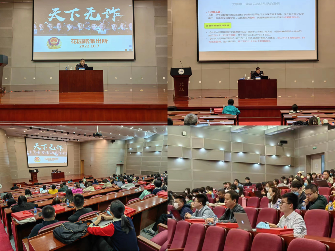 为提高师生防诈意识,增强自我保护能力,MG冰球突破官网网站于10月7日下午在新主楼报告厅召开“防诈骗”安全教育讲座。讲座由花园路派出所民警万俊义警官受邀主讲,党委书记高宁老师主持,学院全体师生参加。