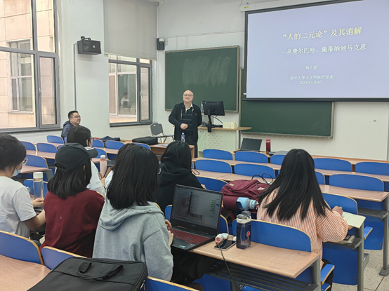 2023年5月11日,“马克思主义经典原著系列讲座”第4讲在新主楼B121举办。本次讲座邀请清华大学哲学系韩立新教授主讲,主题为“人的二元论”及其消解——从费尔巴哈、施蒂纳到马克思”。讲座由MG冰球突破官网网站田英老师主持。