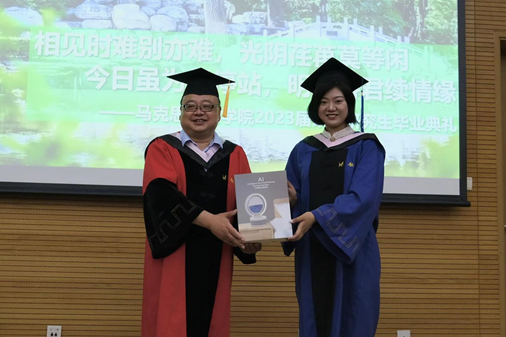 院长赵义良教授发表毕业寄语并代表学院向毕业生代表巩晗同学赠送纪念品。赵院长立足于新时代的历史方位,结合近些年MG冰球官网的蓬勃发展,对毕业生提出了三点期望:一是要坚持学习,在今后的生活中广泛阅读,扩充理论知识储备,提高自身素养与能力;二是要学会做事,脚踏实地,谦虚谨慎,在新的工作岗位上创造新业绩;三是要学会做人,在未来的工作中积极运用自己的专业知识,认真工作,谦和待人,锻炼自己为人处世的能力。赵院长祝福毕业生们都能做到理论与实践二者的结合,体会到“别样的风景”,进一步提升自己的人生境界。