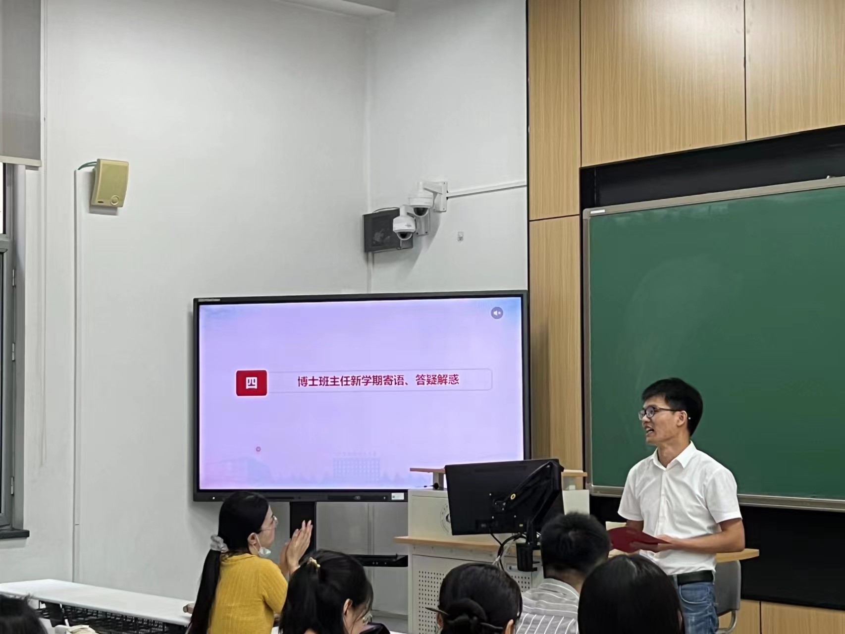 之后,硕士班主任徐冶琼老师解答了同学们在求职、就业及未来发展等方面的疑惑,号召同学们相互帮助、共同进步,并对同学们提出了新学期的新期待。博士班主任巩永丹老师寄语同学们要在马言马,不断学习党的创新理论,以只争朝夕的状态积极完成学业规划,以愈挫愈勇的心态积极面对就业求职。辅导员杜玥老师希望同学们在新学期明确发展方向,科学规划任务,保持积极心态,提早规划毕业论文写作,按照培养方案高质量完成学业任务,为顺利毕业求职打下坚实基础。同时,杜玥老师结合班级工作实际,提醒同学们注意自身的财产和生命安全,返校离校要向导师、辅导员汇报,希望同学们以新的目标、新的面貌在新的学期有新的收获!