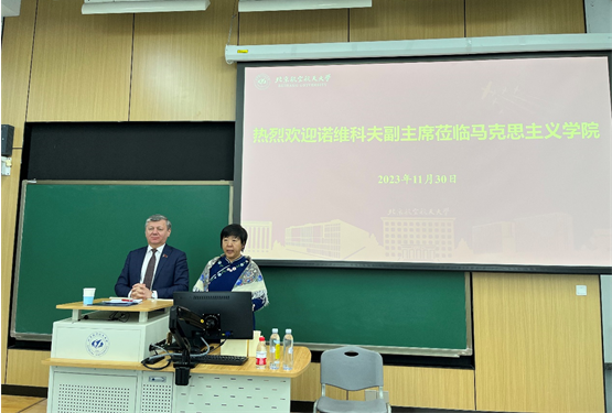 讲座结束后,诺维科夫主席就在场师生提出的关于如何评价苏共历史人物、俄罗斯人民对俄共支持率等问题进行了详细解答。王娜副院长进行总结,鼓励学院的老师和同学们学习马克思主义分析方法,把理论研究和现实观照结合起来,向国际社会讲好中国故事。