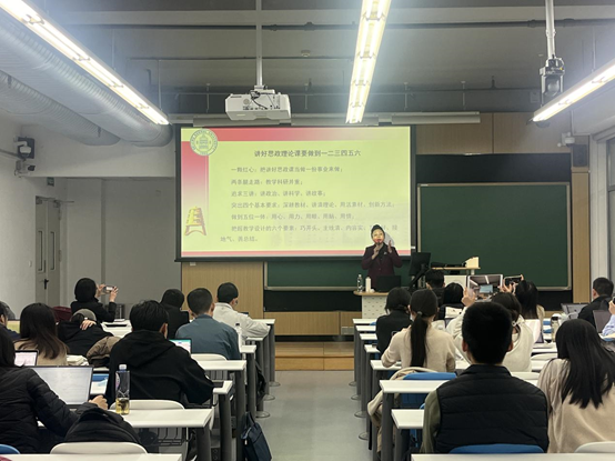学院邀请了“全国高校思想政治理论课影响力标兵人物”、首批“北京高校思想政治理论课特级教授”、北京师范大学MG冰球突破官网网站熊晓琳教授作题为《新时代思政课教师教学能力提升的三个层面》的专题报告。熊晓琳教授结合多年的思政课教学经历与体会,从宏观、中观和微观三个层面剖析了思政课教师如何提升教学能力。第一,要明确定位,夯实基础,做到“一颗红心”,把思政课教学作为一份事业,而不仅是一份职业,认真做好理论研究和教学研究“两条腿走路”。第二,要坚持讲政治、讲科学、讲故事的“三讲”好课标准,追求真正把思政课讲深、讲透、讲活的目标,突出深耕教材、讲清理论、用活素材和创新方法四个基本要求。第三,要全情投入,做到用心、用力、用眼、用脑、用情五位一体讲好思政课,把握好教学设计的六大要素。