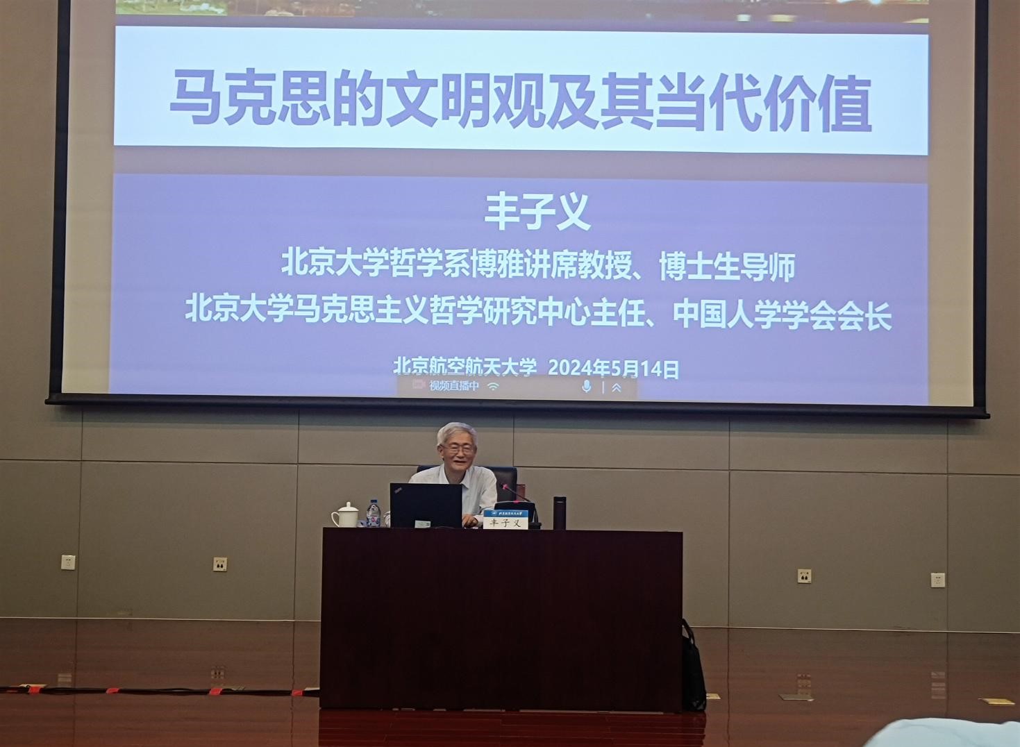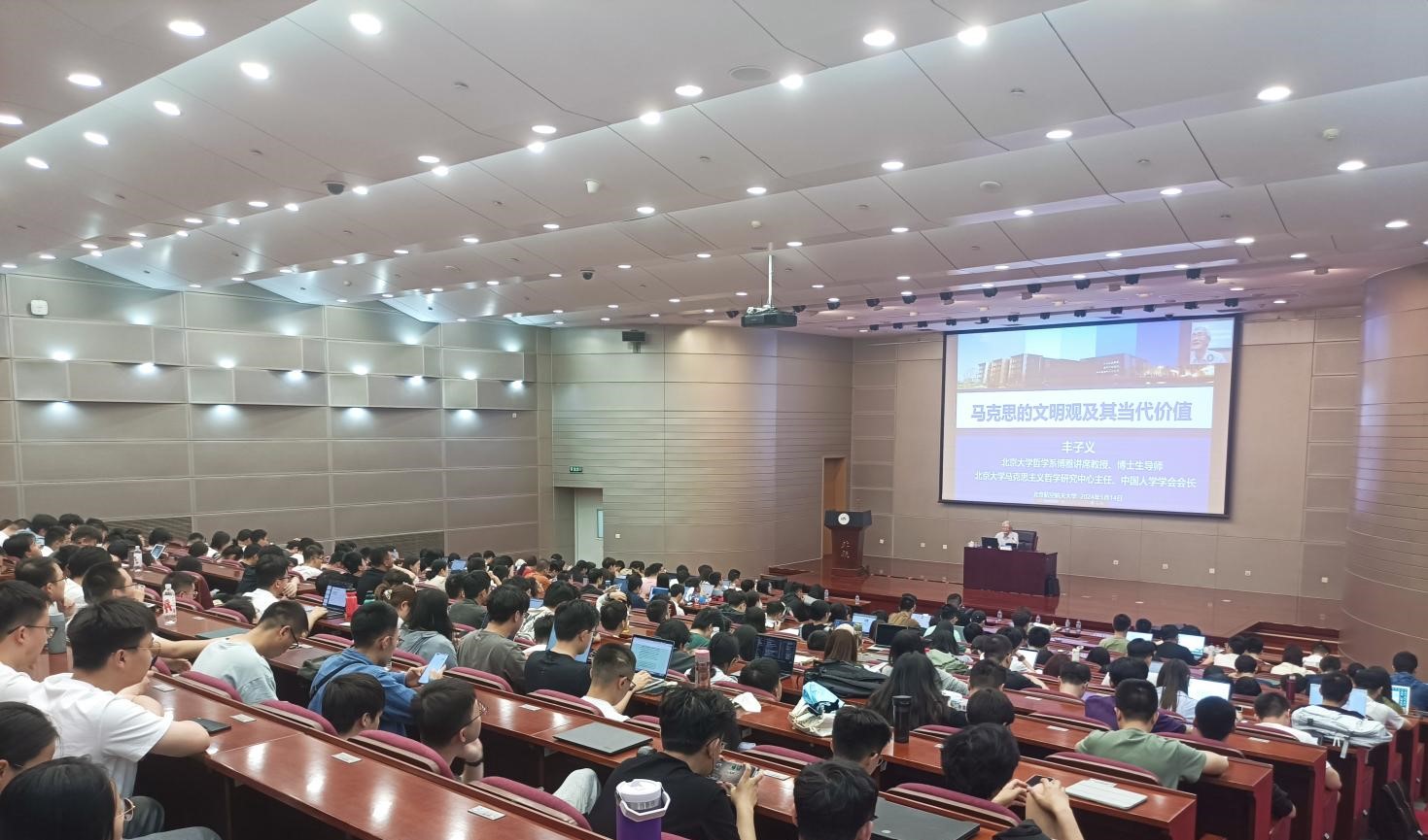 为深入学习贯彻习近平文化思想,推动党的创新理论全面融入思政课堂,2024年5月14日下午,MG冰球突破官网网站邀请北京大学哲学系博雅讲席教授丰子义走进我校思政课堂,作“马克思的文明观及其当代价值”专题报告。报告采取线下主讲和线上直播相结合的形式,我校“形势与政策”课程本科生、“中国马克思主义与当代”课程博士生以及MG冰球突破官网网站部分师生参加。报告由MG冰球突破官网网站副院长王娜主持。