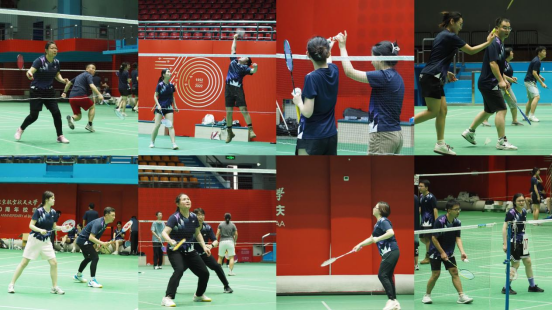 本届比赛在延续往年两届羽毛球赛成功经验的基础上,又在赛制和规则上进行了创新。赛前,全体师生经随机抽签配对组成搭档,由双盲抽签确定分组。比赛共分为女子双打和混合双打两类项目,采取团体循环赛,每场比赛采取3局2胜、11分制。在赛场上,选手们展现出了策略调整的智慧和团队协作的精神,大家奋勇争先,士气高昂,起跳、展胸、引拍、收腹、击球……激烈的比拼奉献了一场又一场精彩对决。