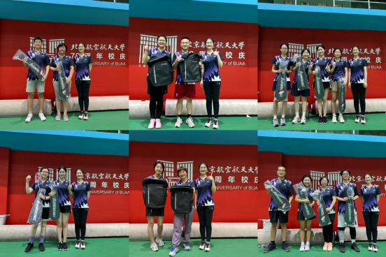 本次比赛各参赛选手们以竞技增友谊,以拼搏展风采,充分展现了马院师生团结奋进、积极向上的精神风貌,一次次精彩的攻防转换和默契的团队配合,把比赛推向了一个又一个高潮。通过激烈角逐,混双组教师常方圆、学生吴圣队获得冠军,教师宋芳芳、学生李彦甫队获得亚军,教师王娜、学生冯培霖队和教师孙新、学生张芮宁队取得第三和第四名的成绩;女双组教师李富君、学生张丽娜队摘得桂冠,学生孙玮彤、聂彤队获得亚军,学生杨格格、张燕队获得季军,教师张寒、学生张子晴队取得第四名的成绩。赛后,学院工会主席陈萌为获奖选手颁奖。