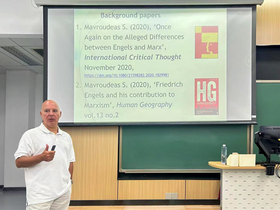 9月11日,希腊派迪昂大学社会政策系教授、世界政治经济学会副会长斯塔夫罗斯·马夫鲁迪亚斯(Stavros Mavroudeas)受马克思主义学院邀请,在主B118做主题报告。此次报告为“海外名家系列讲座”第八讲,题目为《再论马克思和恩格斯的所谓差异》(Once Again on the Alleged Differences between Engels and Marx)。讲座由MG冰球突破官网网站刘娜娜副教授主持。