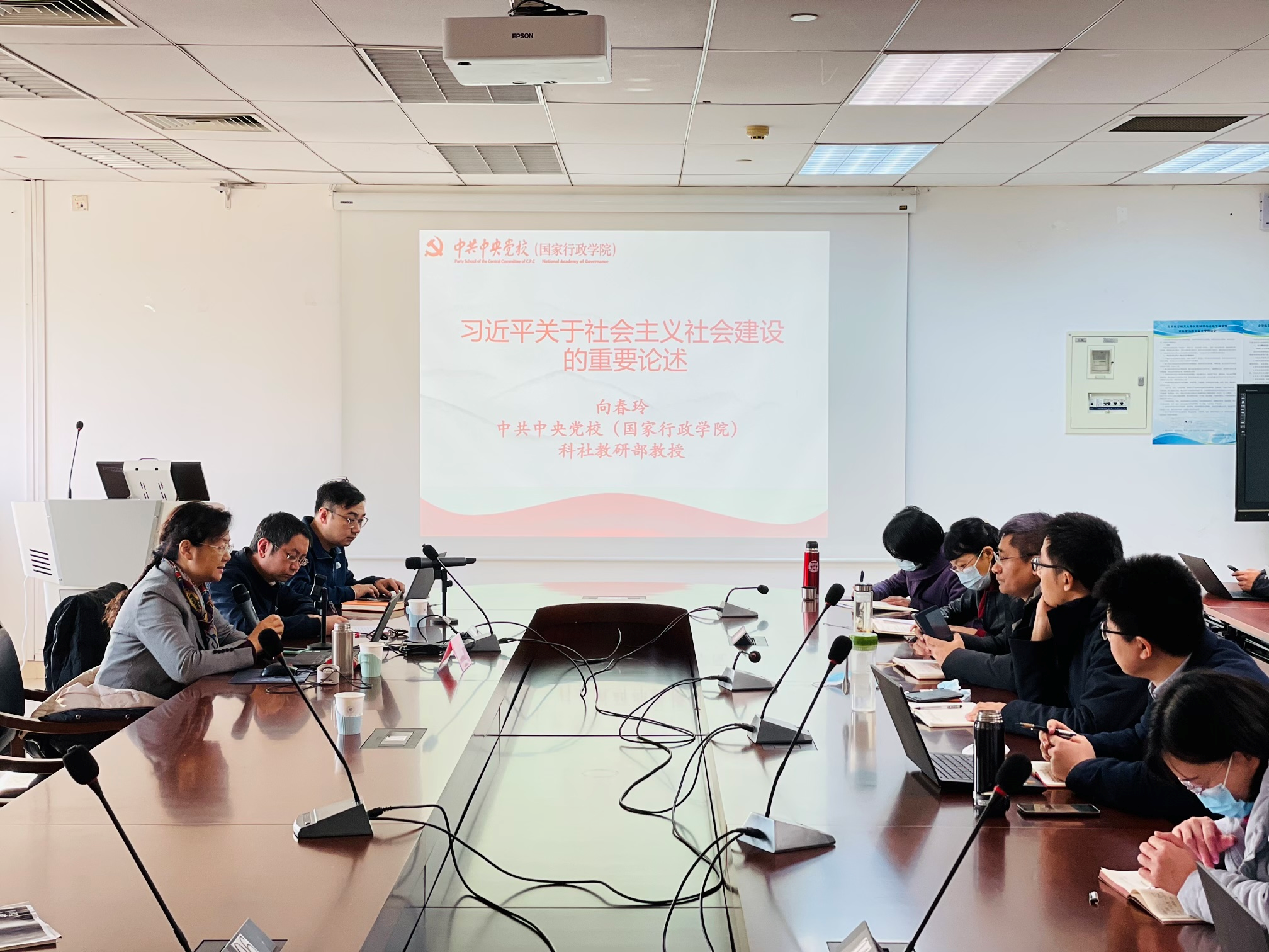 12月11日上午,MG冰球突破官网网站第十五次集体学习日活动在新主楼B座707室举行。中央党校向春玲教授应邀作了《习近平关于社会主义社会建设的重要论述》专题报告,活动由学院书记高宁主持,MG冰球突破官网网站师生30余人出席。