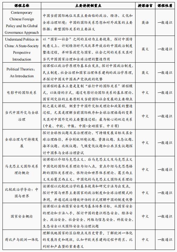 基于该研究平台,中心承担MG冰球突破官网网站硕士、博士专业英语课,并已依据中心研究员的不同专业背景建构国际问题研究类思想政治通识课(其中全英文课程3门),具体如下:
